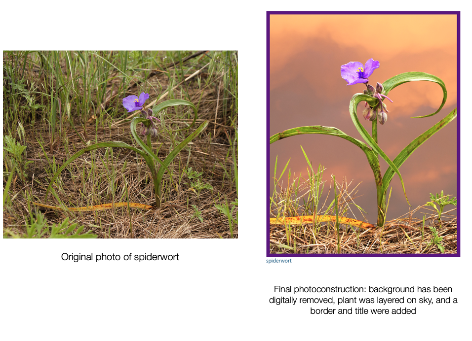 Note: Please visit each of the 6 pages of wildflowers. The plants are placed into groupings depending on the general order in which they were made over the years. Group 1 plants were the first ones that I photographed and turned into photoconstructions; Group 6 were done several years later, and Group 7, the last set, still needs to be uploaded on the website.